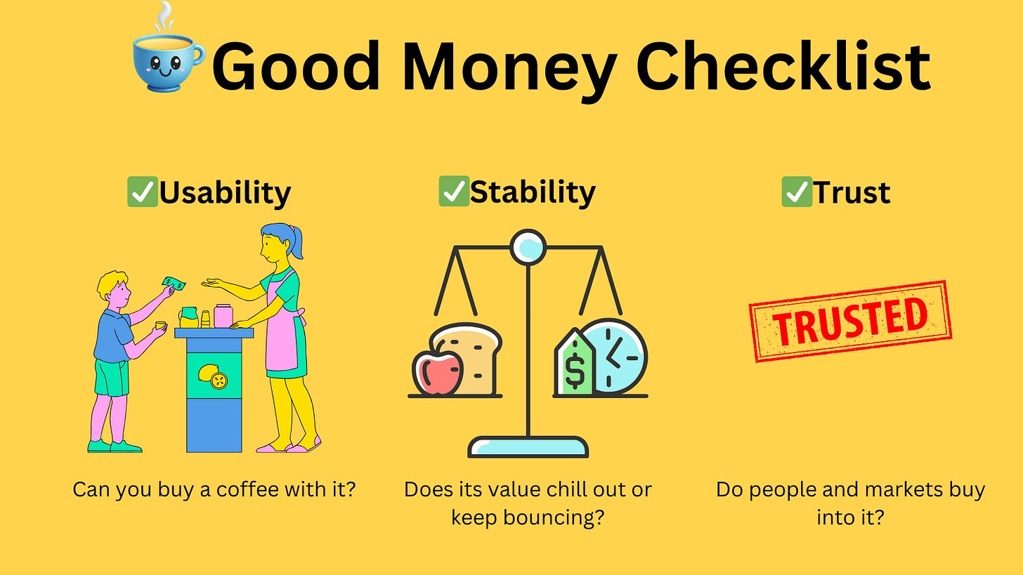 Now, let's turn to today's topic: stablecoins. This is the second-to-last topic in our series on the Denationalization of Money (with Real World Asset tokenization being the final piece). We'll evaluate the current money market using Hayek's framework of what makes "Good Money."