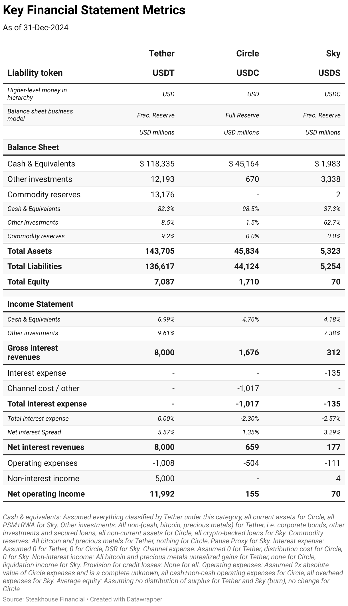 USDT, USDC & USDS Key Financial Statement Metrics