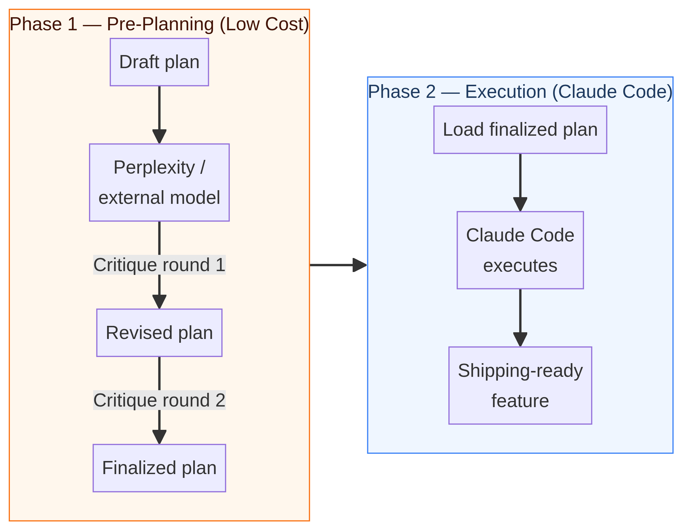 Another excellent strategy for saving tokens in your Claude Code sessions is two-phase pre-planning. You can draft your initial plan using Perplexity (or another model) and have it critique the plan several times. Usually, after two rounds of critique and debugging, the plan is robust. Only then do you bring the finalized plan into Claude Code to start executing.