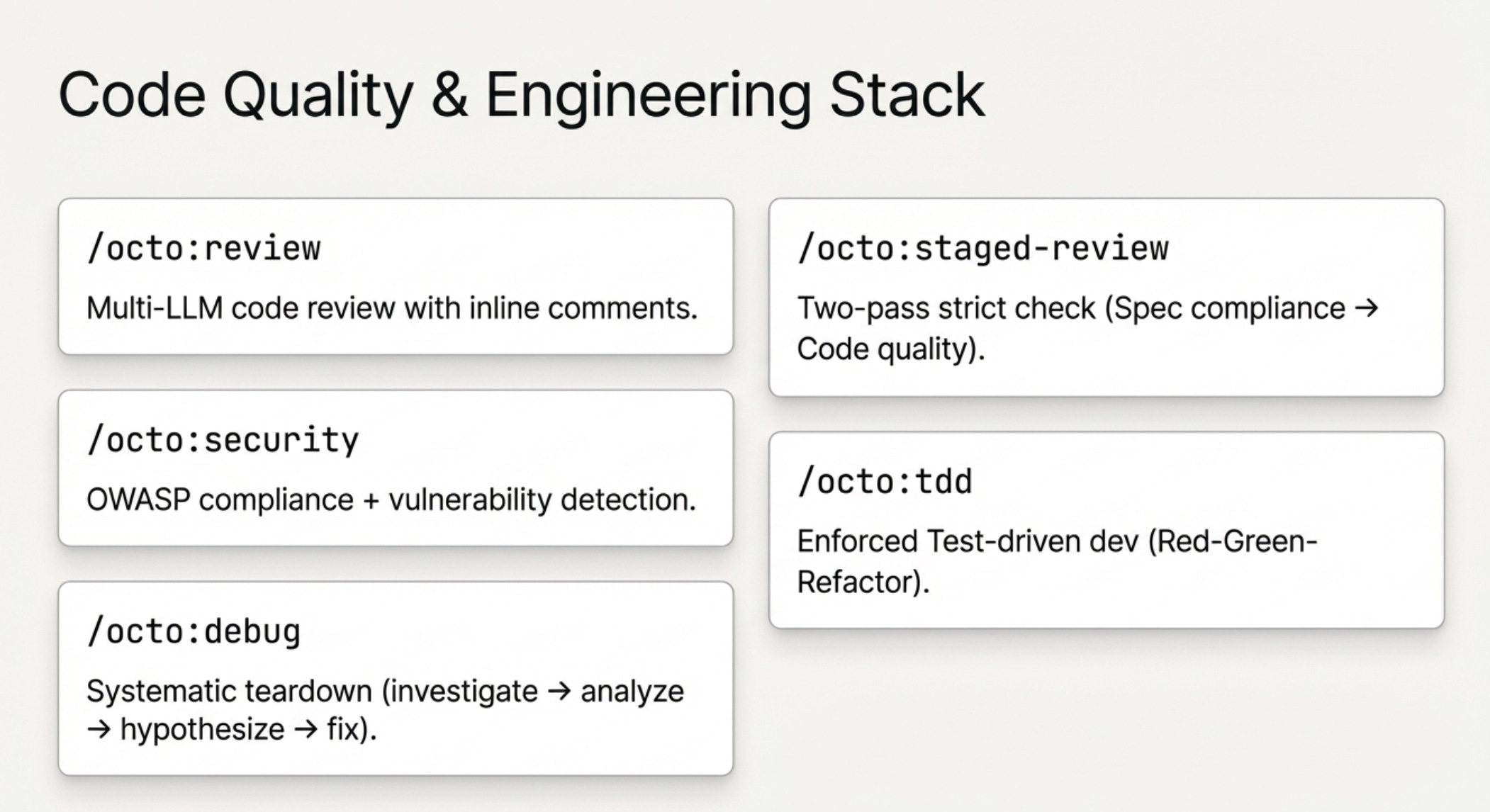 If you want an even more thorough review using different models, I recommend an open-source framework called Octopus. This tool allows you to plug in up to six different models simultaneously—including Qwen, Codex, and others.