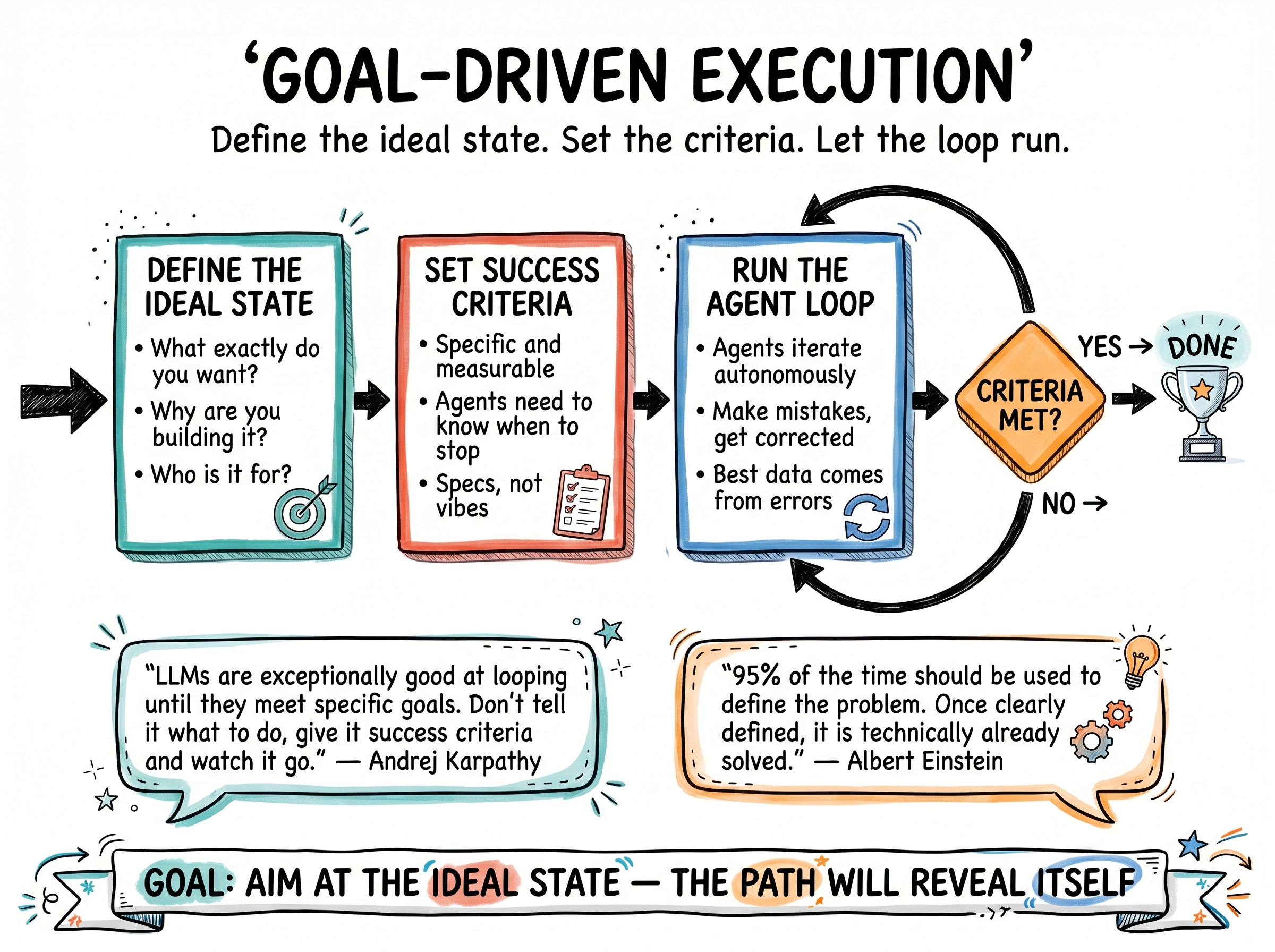 As Einstein beautifully put: 95 percent of the time should go to defining the problem. Once the problem is clearly defined, it is technically already solved. I think the same logic applies to building agents. Almost all the difficulty lives in defining the ideal state. Everything after that is iteration.